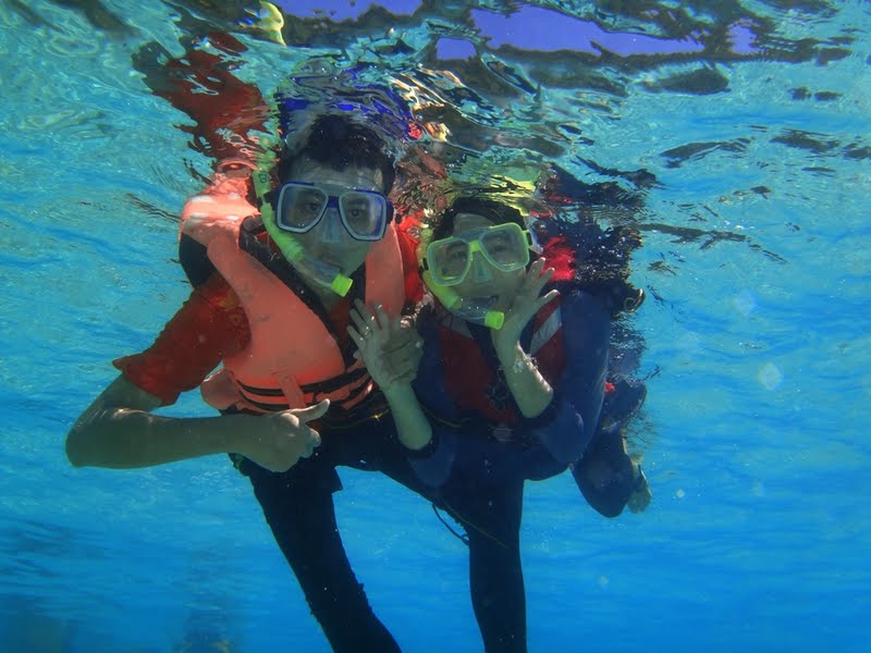 so aku diberi kebenaran utk teruskan aktiviti snorkeling. kira maju sket dari budak2 belakang tu ;)